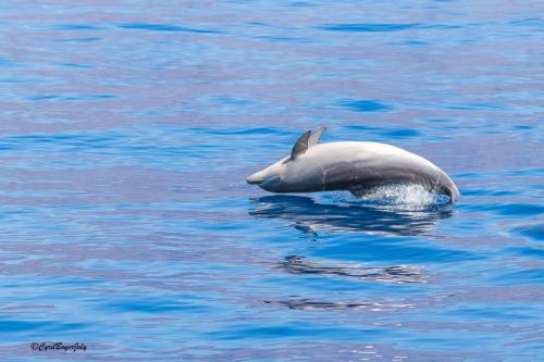 Lors de mon séjour aux îles Canaries, j’ai pu observer une petit colonie de grands dauphins qui évoluaient le long des côtes de Tenerife. Le Grand Dauphin est un cétacé appartenant à la famille des Delphinidés. Il mesure entre 2 et 4 mètres avec un poids qui varie de 150 à 400 kg. Sa couleur de peau se constitue de plusieurs nuances de gris. Son corps fusiforme permet de réduire les frottements et sa peau alvéolaire amortit les turbulences. Il nage à l’aide d’une nageoire dorsale, de deux nageoires pectorales et d’une caudale. Par conséquent, le Grand dauphin dépasse allègrement les 60 km/h, lui permettant aussi d’effectuer des acrobaties spectaculaires en dehors de l’eau comme : le saut complet hors de l’eau, le saut redressé atterrissant sur le dos, le saut vertical, le saut en reculant…